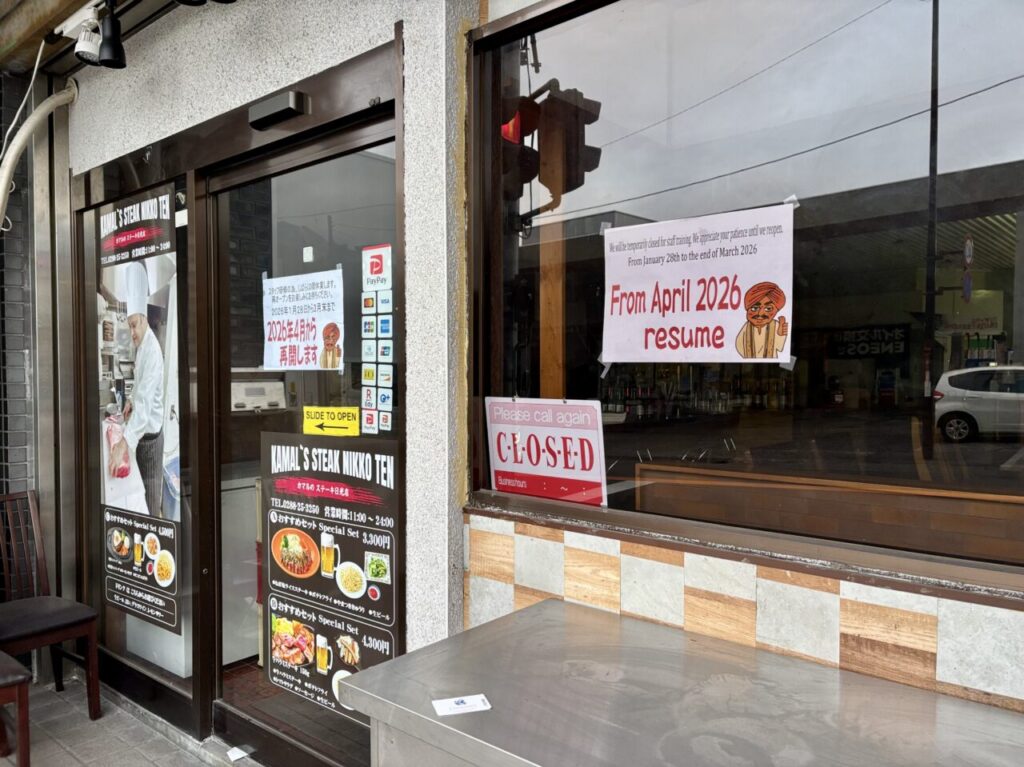 先日、近くを通った際に、気づきました。看板は残っていますが、入口や窓はビニールシートで覆られています。
