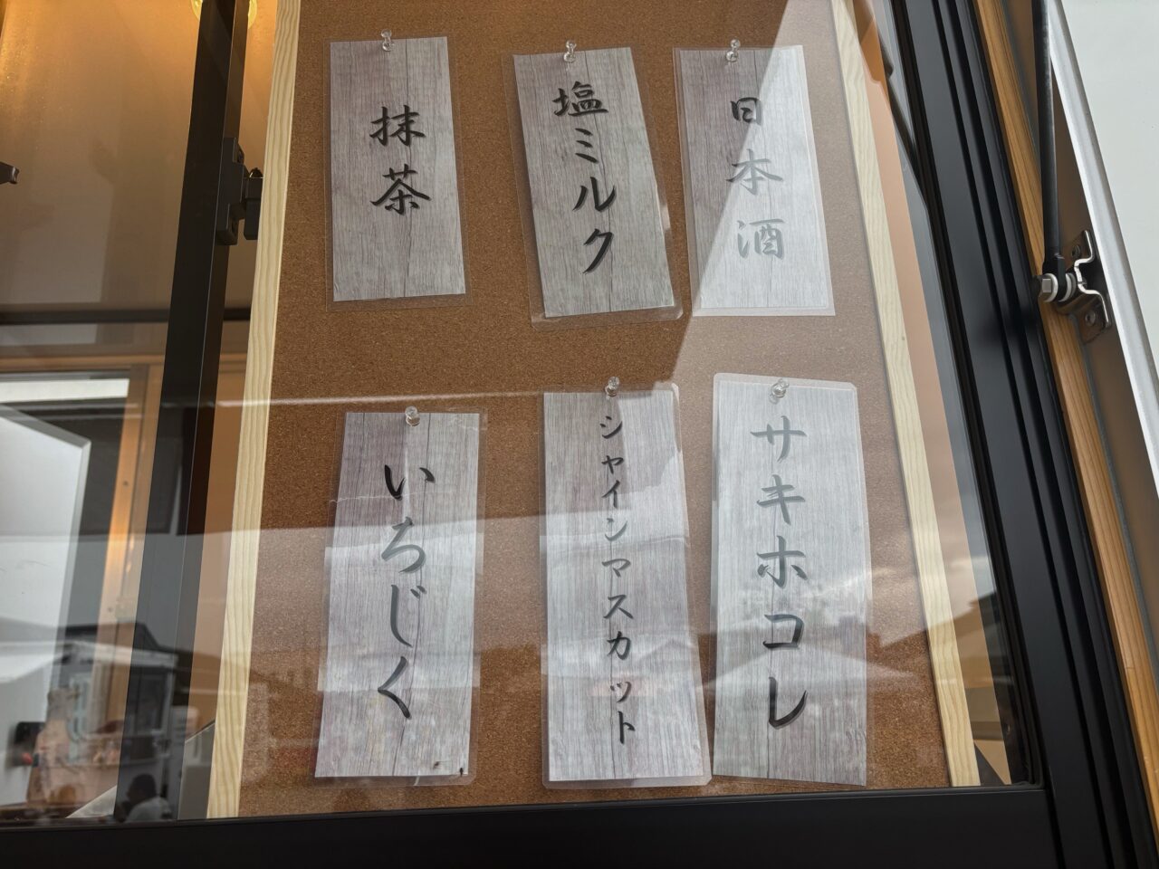 常時6種類のジェラートが並び、日によってフレーバーが入れ替わります。塩ミルクや抹茶が鉄板フレーバーだそうです。