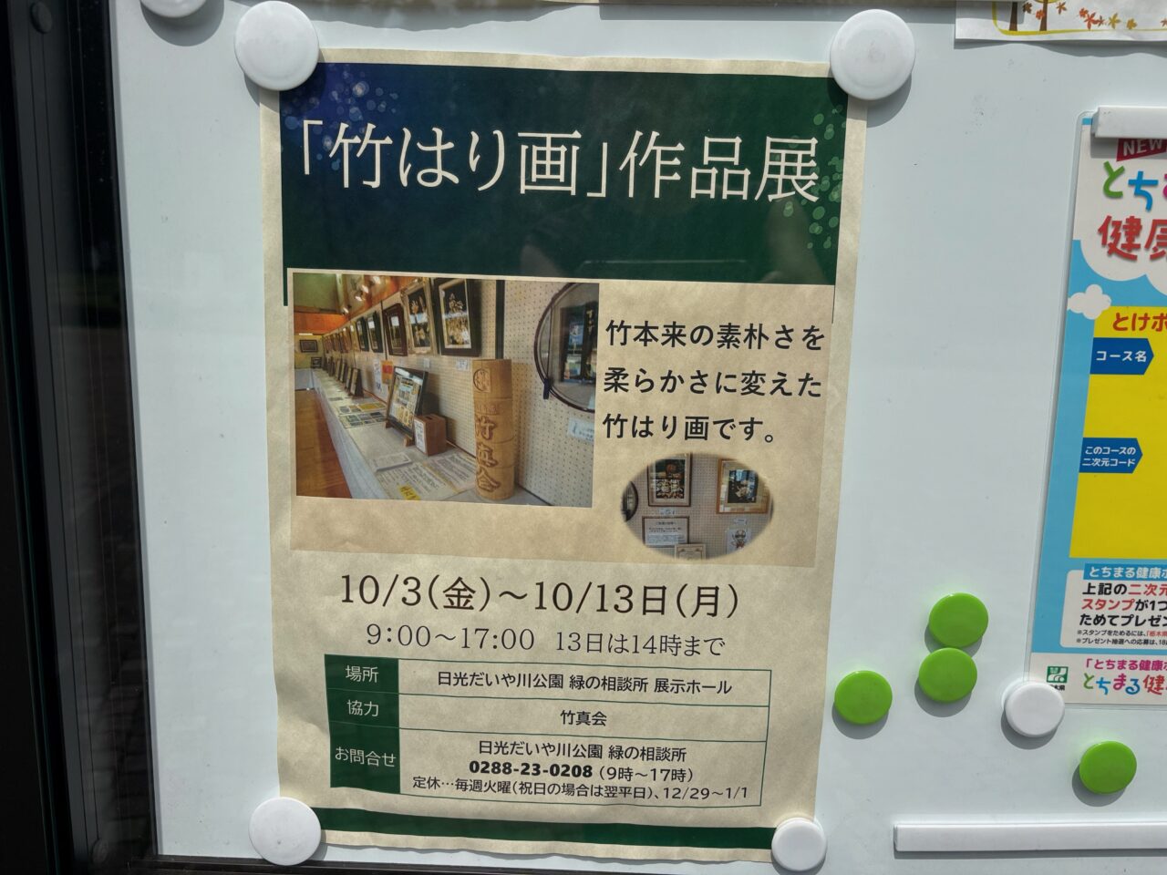 【日光市】10/13日まで。日光だいや川公園「緑の相談所」で竹はり画作品展が開催中です。
