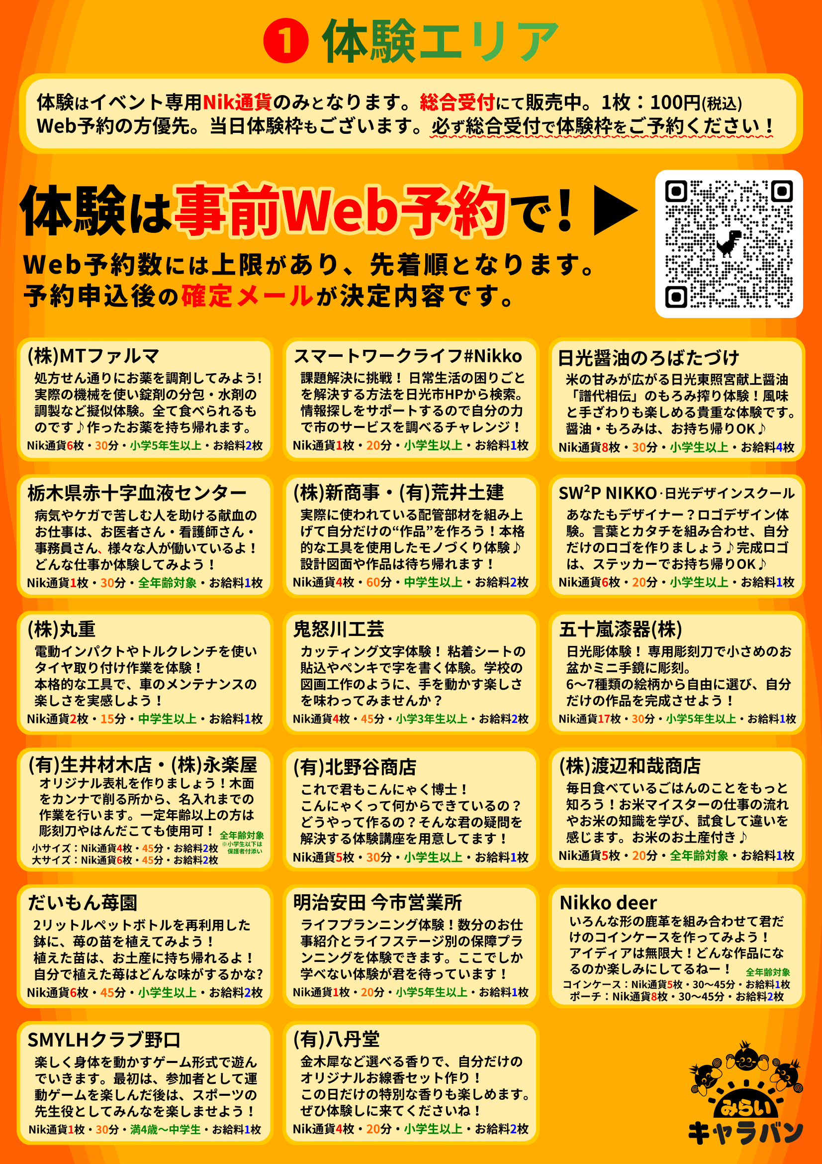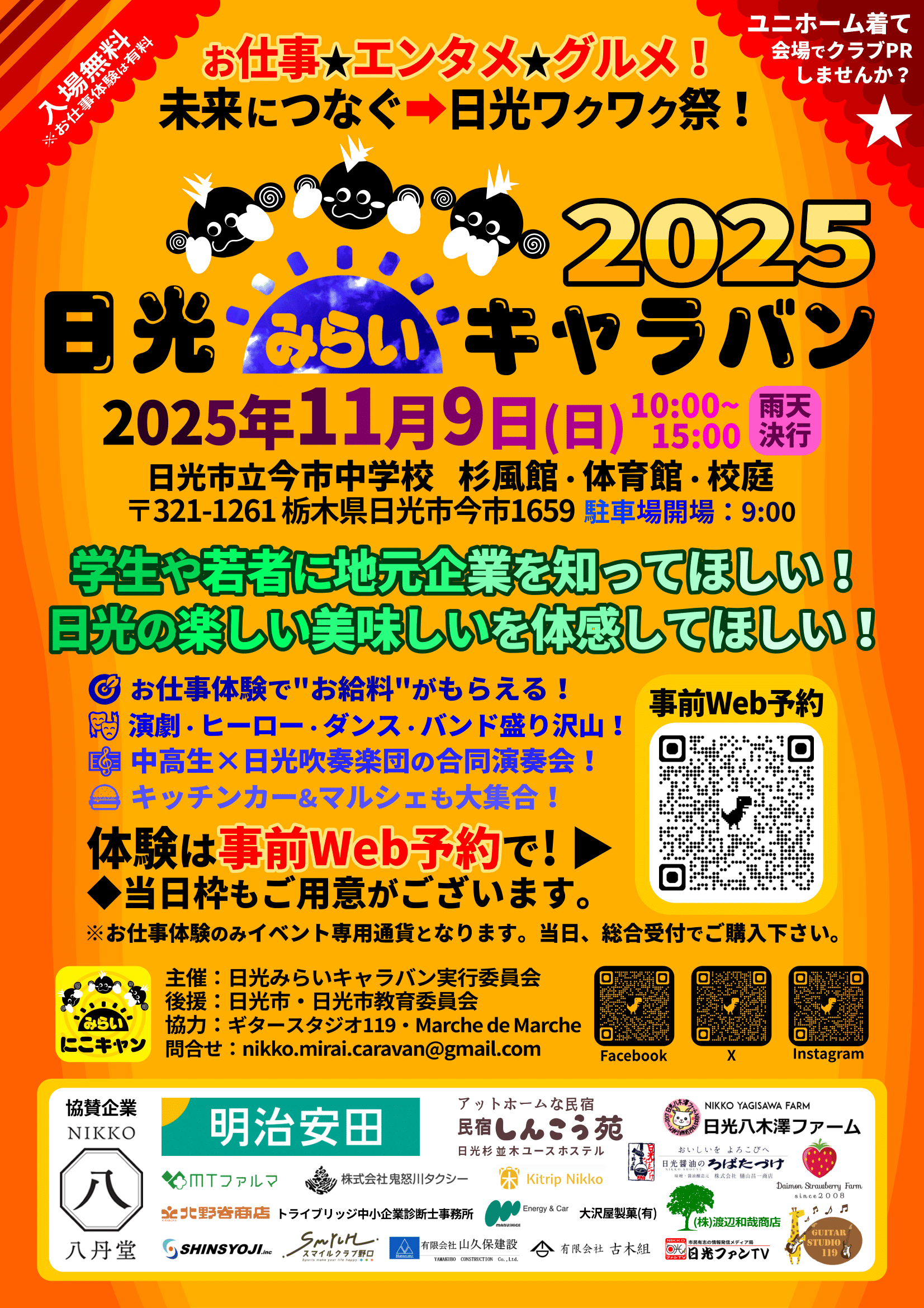 【日光市】地元の未来を体験しよう!働く×食べる×楽しむ「日光みらいキャラバン」が11月9日(日)に今市中学校で開催予定。