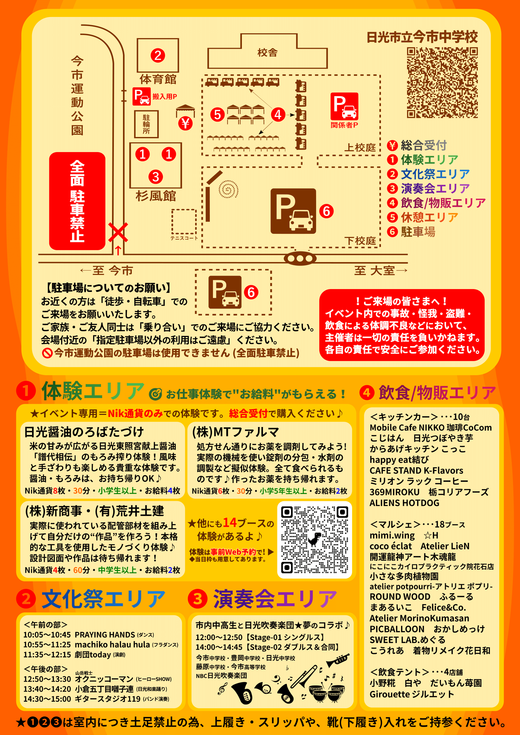 お仕事体験以外にも文化祭・演奏会エリア・飲食や物販もあります。