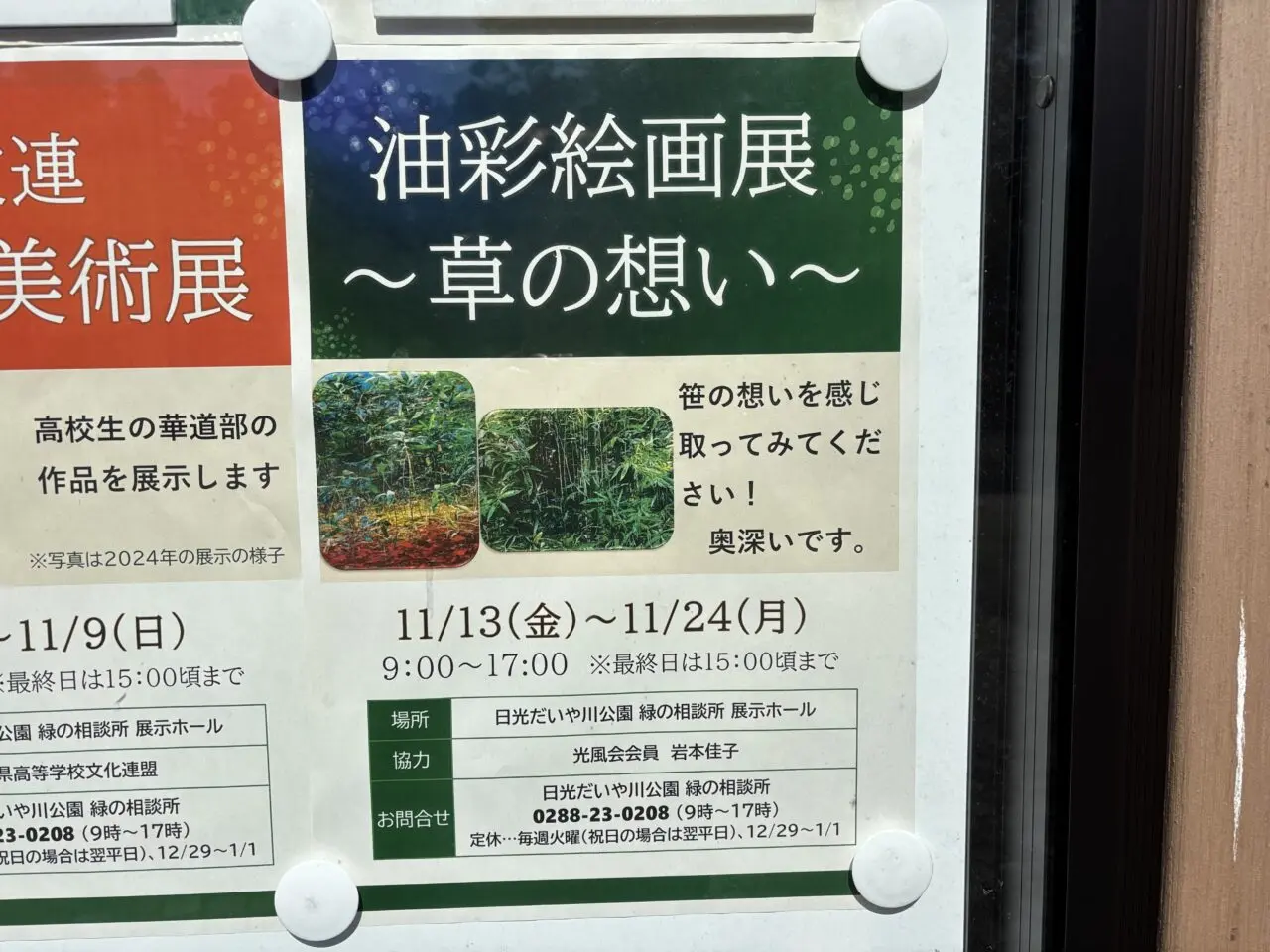 「日光だいや川公園」の交流エリアにある施設「緑の相談所」で、『油彩絵画展~草の想い~』 が開催されることがわかりました。