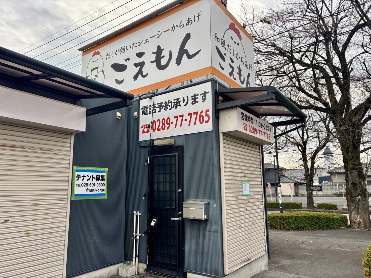 先日、閉店をお伝えした「Libert‘e(リベルテ)鹿沼店」。その際に訪れたところ、隣にあった和風だしからあげの「からあげ ごえもん 鹿沼(西茂呂)店」も閉店していることが判明しました(2025年12月11日)。