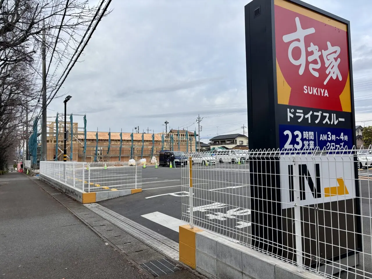 【鹿沼市】何ができる?さつき大通り沿い、ゼッテリアの裏・すき家駐車場前で建設中の建物を発見しました。