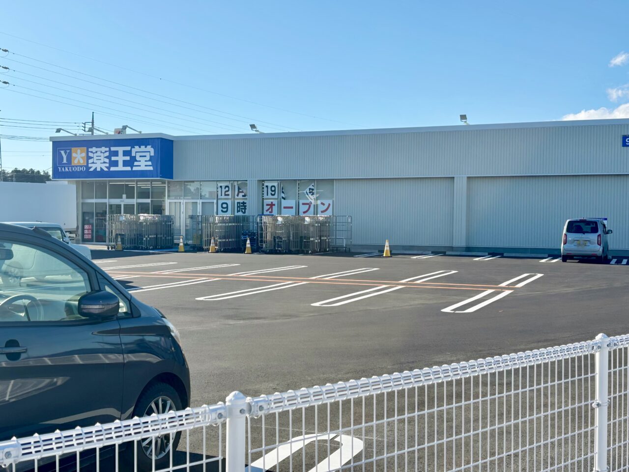 建物は完成し、広い駐車場も完備。窓には大きな文字で12月19日(金)9時オープンと表示されています。