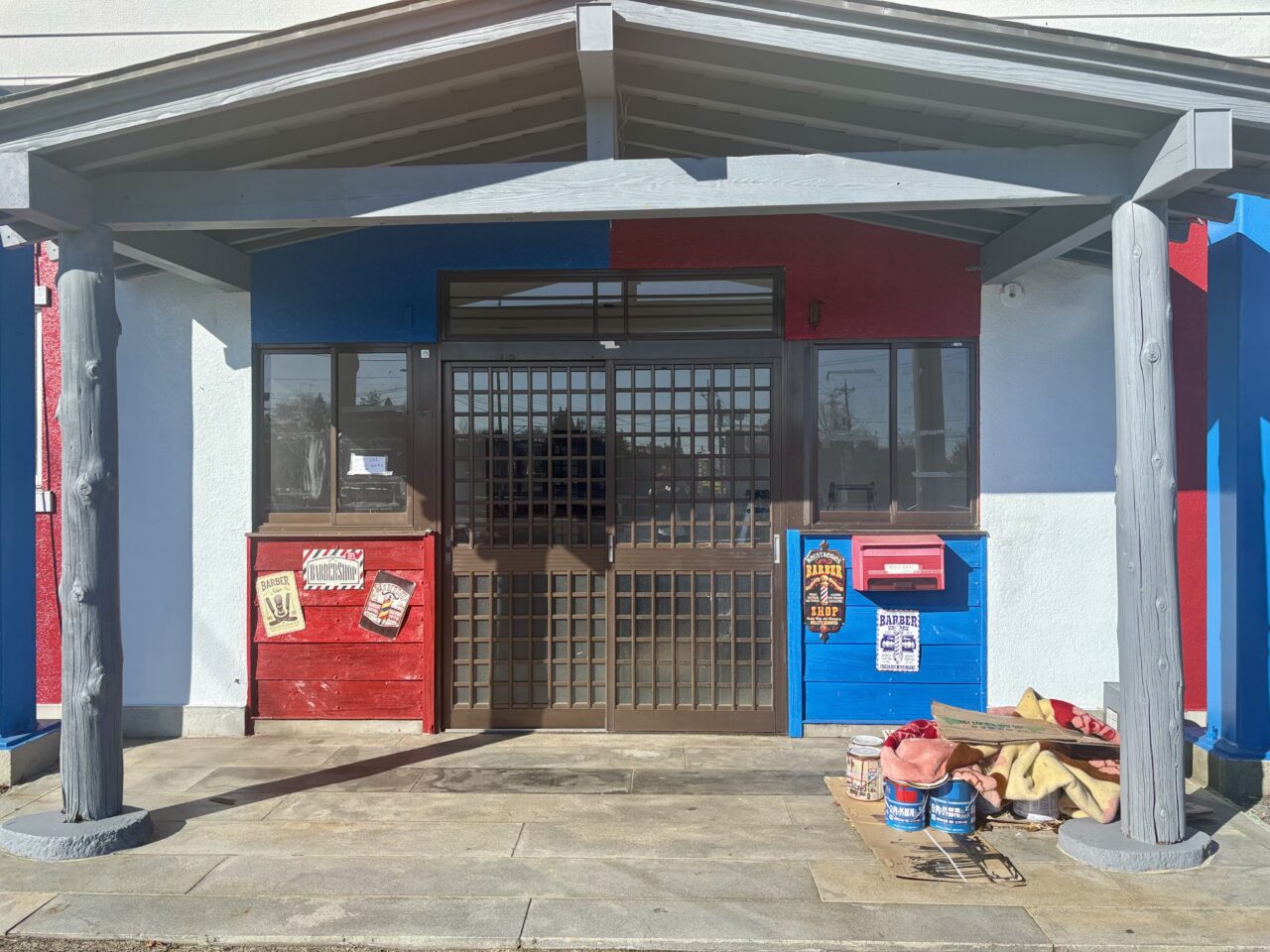 外壁は赤と青のストライプに塗られており、いわゆる“床屋カラー”。遠目から見ても、理美容店であることがイメージできました。