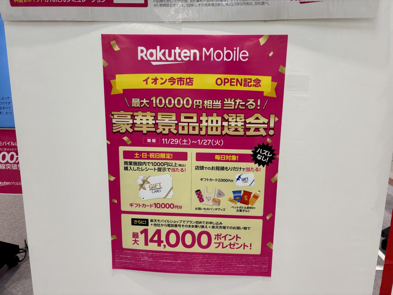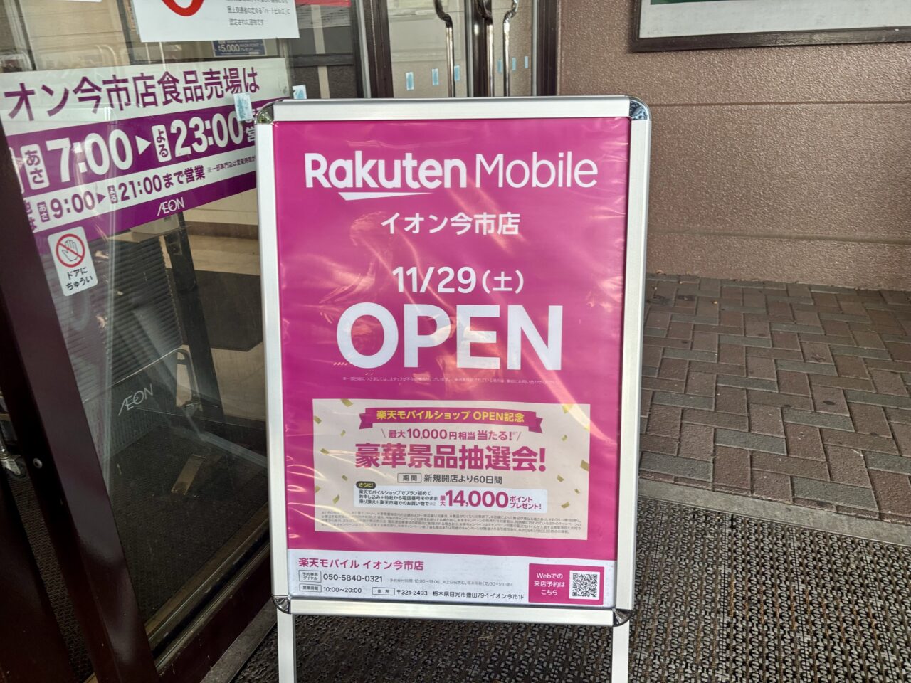 楽天モバイル イオン今市店では、オープンを記念した抽選会が実施されていました。