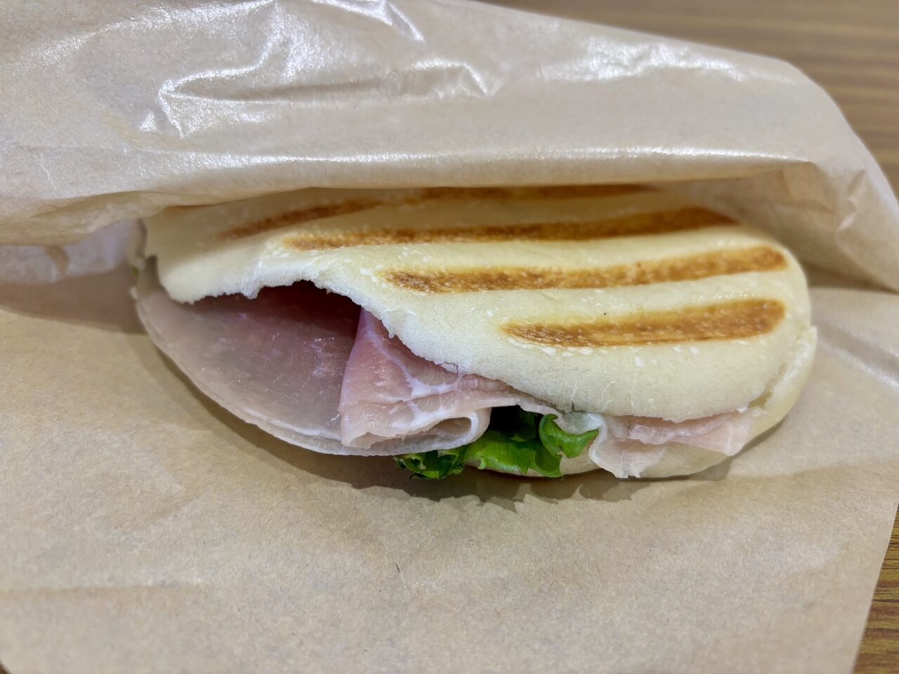 手に取りやすく、歩き途中にも食べやすいパニーニです。パンは外はカリッと、中は噛むともっちりとした食感で、具材とのバランスも良く感じました。