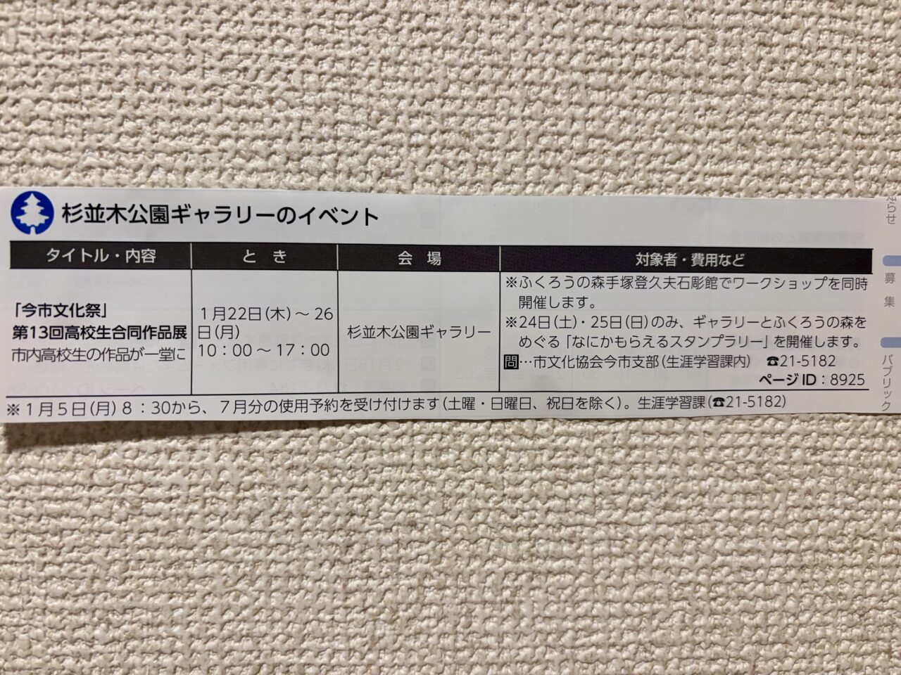 2026年1月22日(木)~26日(月)の5日間には、今市文化祭の一環として「第13回 高校生合同作品展」が開催。今市高等学校、日光名峰高等学校、今市工業高等学校、今市特別支援学校の生徒による作品が展示されます。