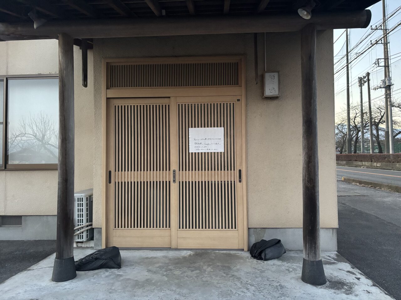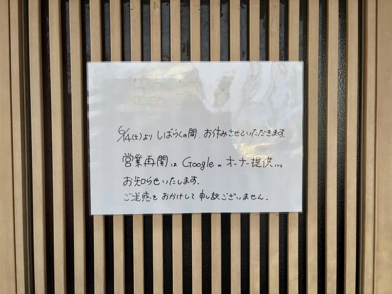 現地で確認したところ、店舗入口に張り紙が掲示されていました。