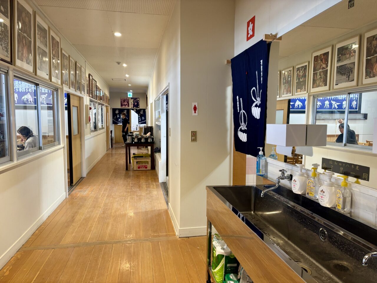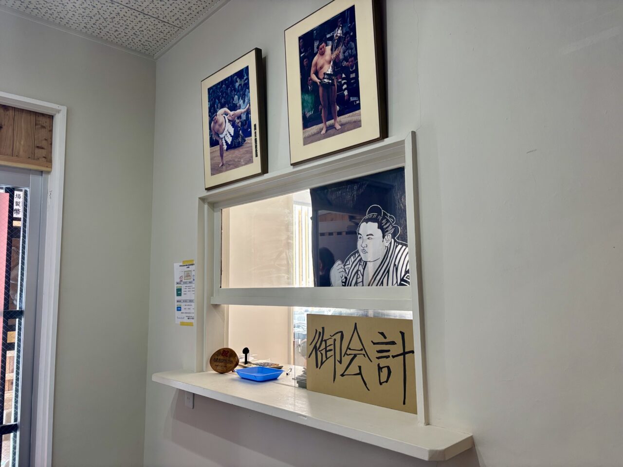 部屋には相撲のまわしが飾られ、テレビでは過去の相撲中継の映像が流れていました。店内には相撲の空気が自然と漂います。