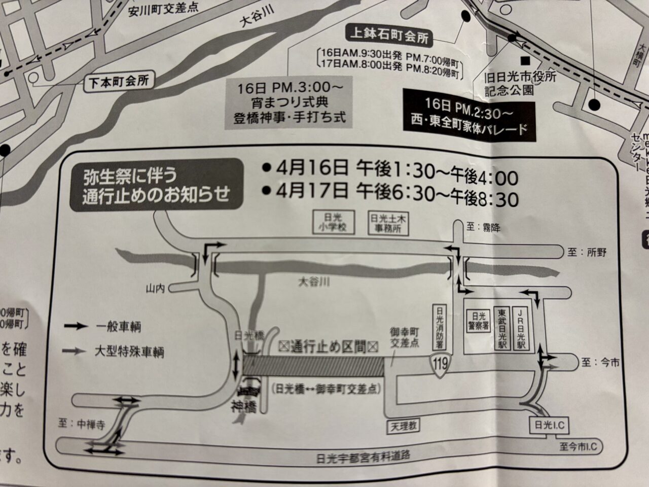 弥生祭当日に日光地域の市街を利用される方は、渋滞が予想されますので余裕を持ってお出かけされると良いでしょう。