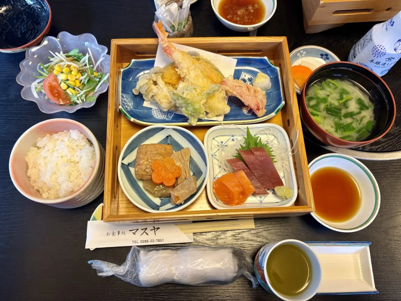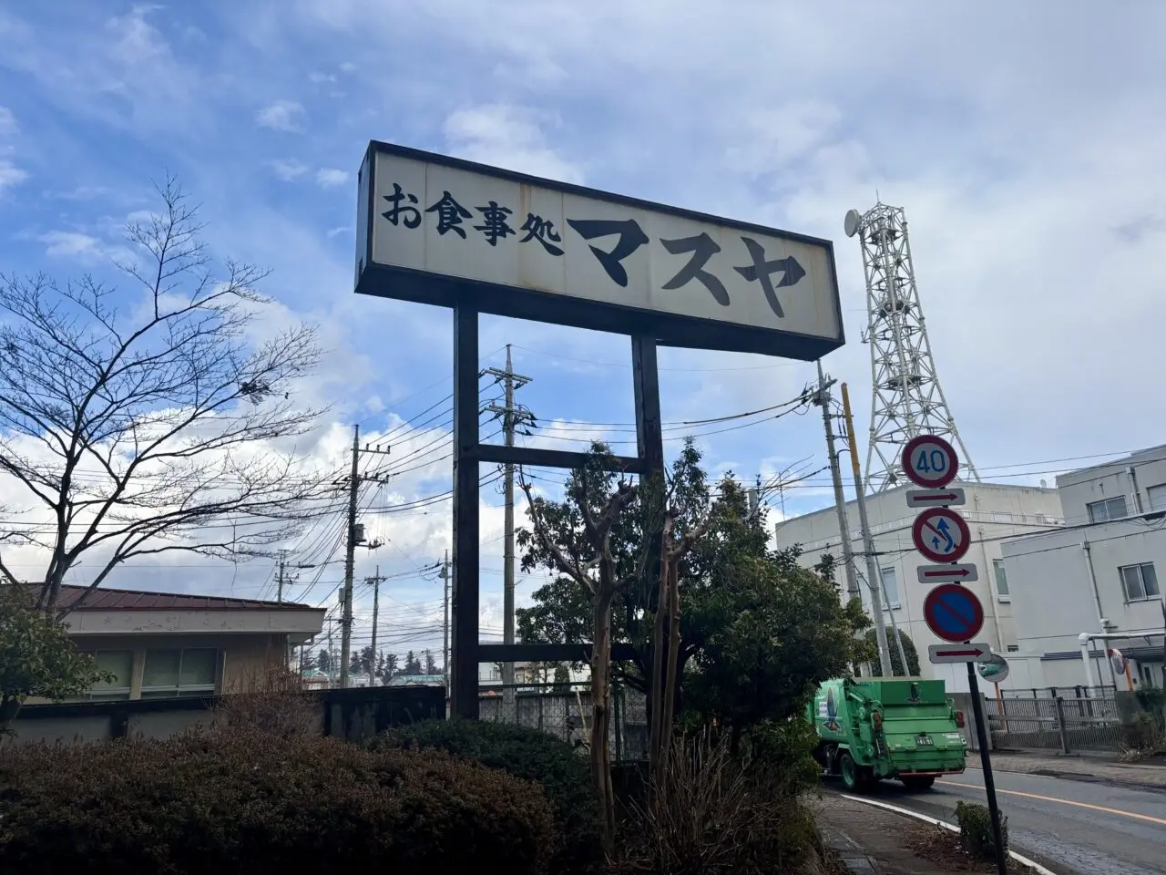 日光市役所の近くを通るたびに、以前から気になっていた「お食事処マスヤ」。大きな看板が目に入り、仕出しや魚料理の評判も耳にしていたことから、ランチで利用しました。