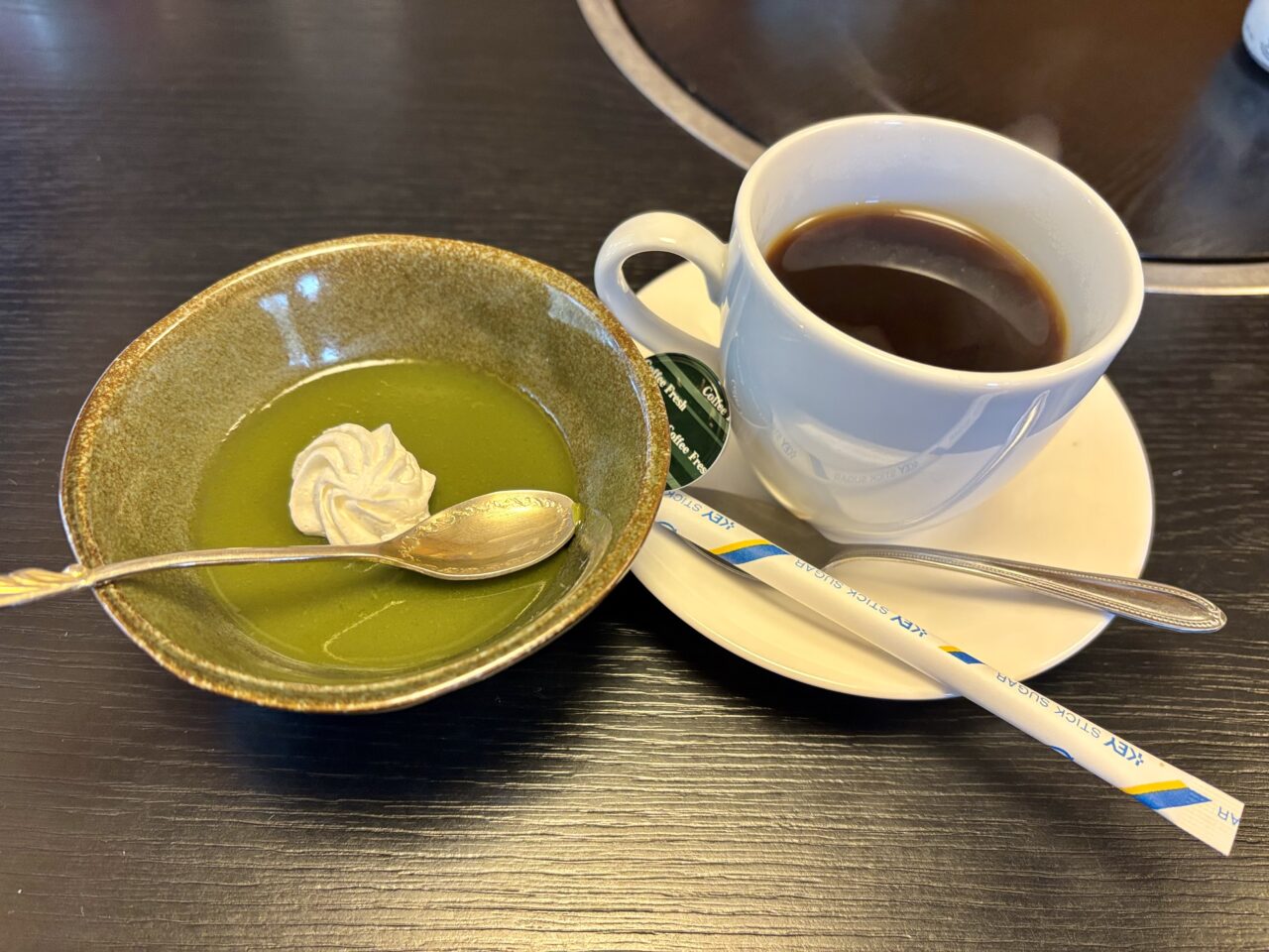 これだけではありません。食後にはコーヒーと抹茶デザート付きます。ひとつひとつ丁寧に作られているのが伝わる味わいで、最後まで満足感のあるランチでした。