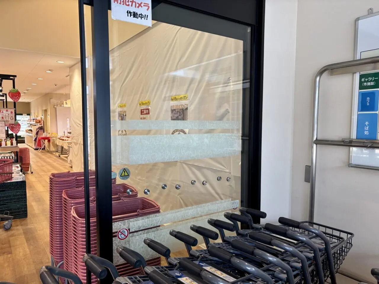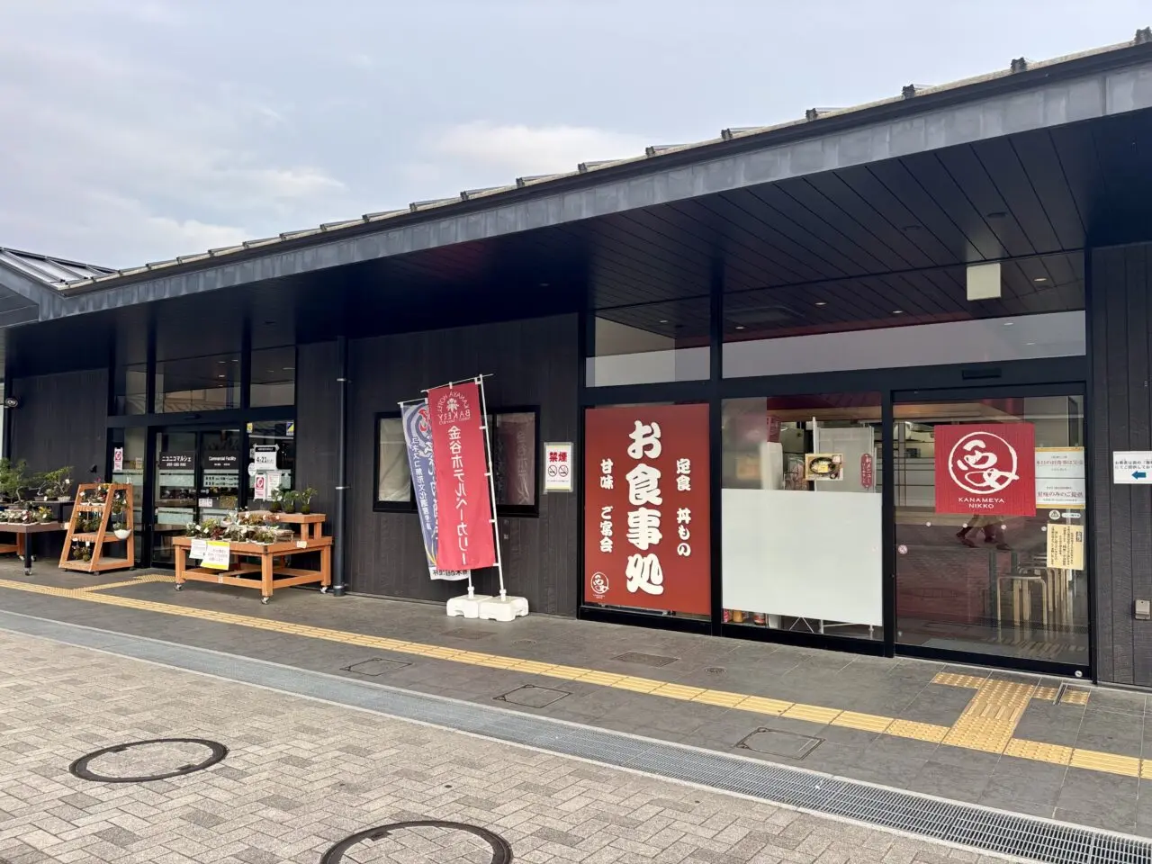 その後、どうなったのか気になるところ。2026年4月6日に現地を訪れると、次にオープンする店舗のお知らせが掲示されていました。場所は、道の駅日光 ニコニコマルシェの駐車場側出入口近くです。